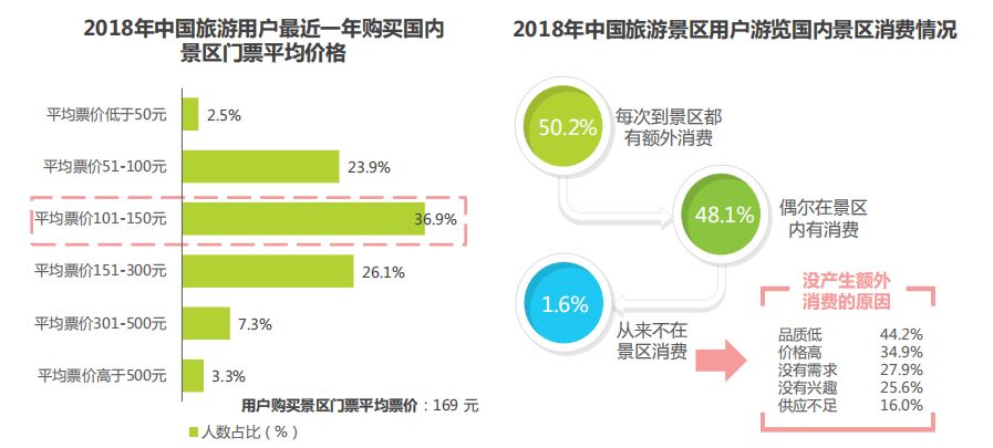 旅行客が支払った観光地入場チケットの平均価格は169元で、旅行客の実に98.4%が観光地で入場料以外にお金を消費しています。