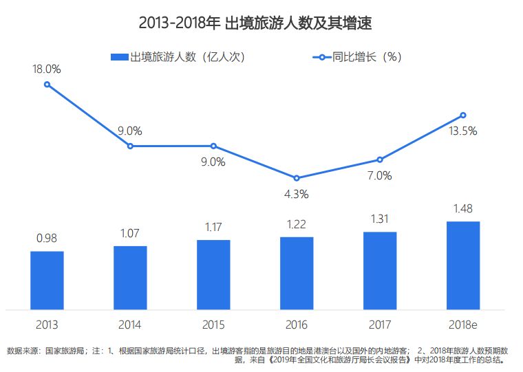 しかし、数年間の低成長を経て、2018年の国外旅行者数は再び二桁成長を見せました。国外旅行市場の加熱ぶりが伝わってきます。