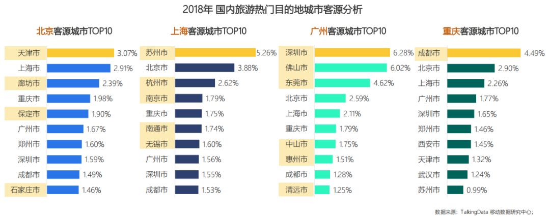 主要都市への旅行客の人気は近隣都市からの訪問が最も多くなっています。